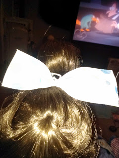 Find some pretty ribbon you have around the house. This ribbon had the colors of the outfit I won.